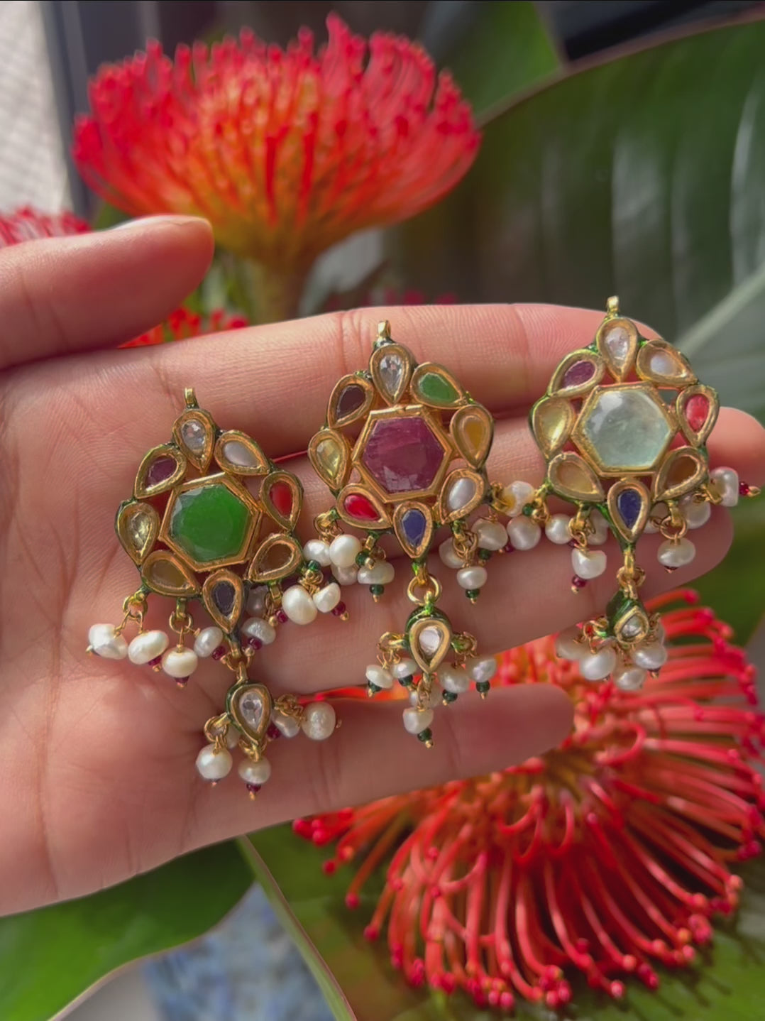 Whether you're dressing up for a night out or adding a pop of colour to your everyday look, these Navratan earrings are sure to dazzle and delight!